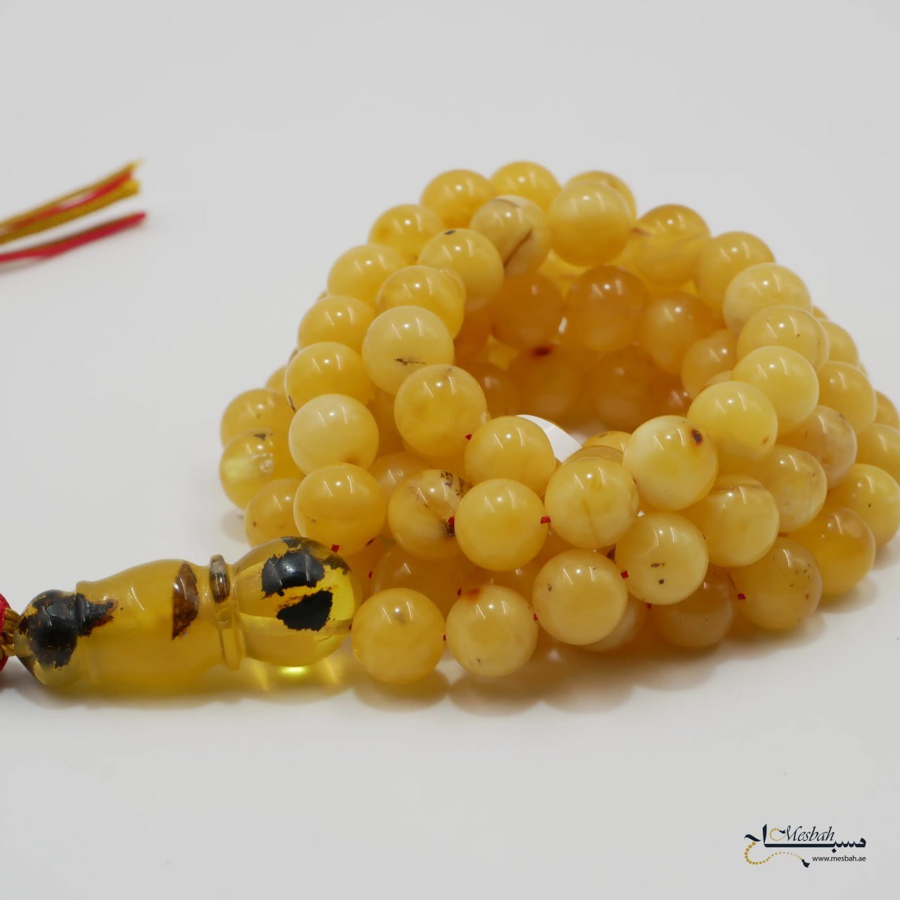 استمتع بجمال فريد وأصالة لا تُضاهى مع هذا المسباح المصنوع من الكهرمان البلطيقي الأصيل. كل حبة من حبات هذا المسباح تُجسّد قطعة من الزمن، تُبرز تفرد الكهرمان المستخرج من أعماق بحر البلطيق.
