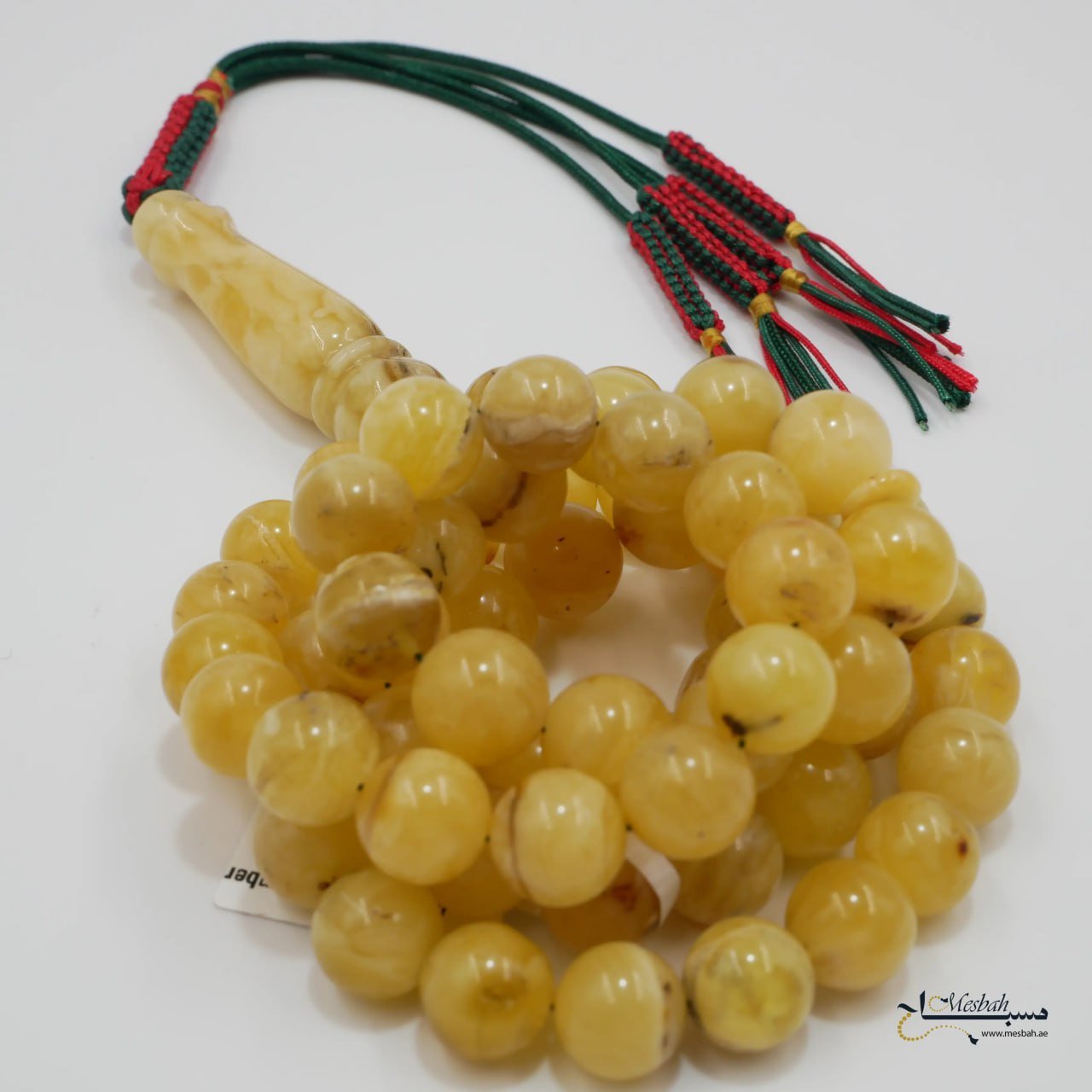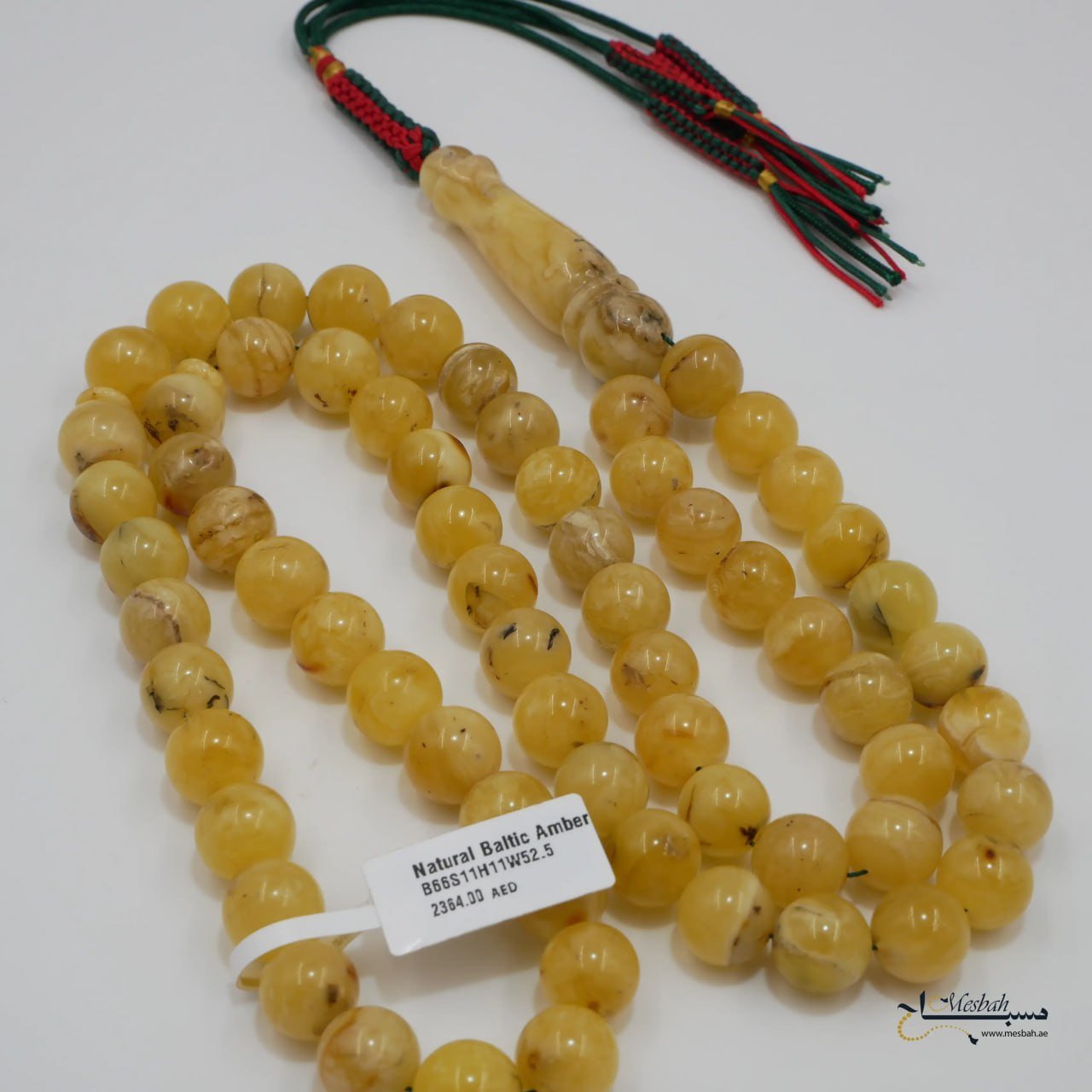مسباح كهرمان بلطيقي فاخر يحمل في تفاصيله لمسة من الجمال الطبيعي والأصالة. صُنعت خرزاته بتصميم دائري متناسق يمنح المسباح انسيابية مريحة بين الأصابع، لتجربة تسبيح هادئة وسلسة. يتميز الكهرمان البلطيقي بلونه الدافئ وشفافيته الجذابة، ويزداد جماله مع التنميشات الدقيقة الطبيعية التي تتوزع داخل الخرز، فتمنحه طابعًا فريدًا لا يتكرر.