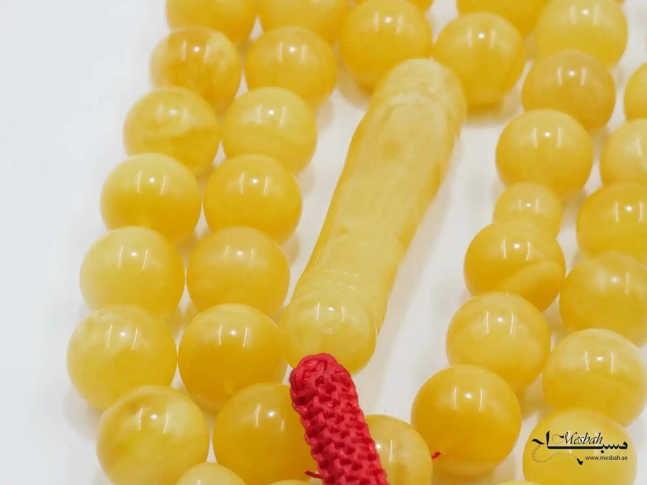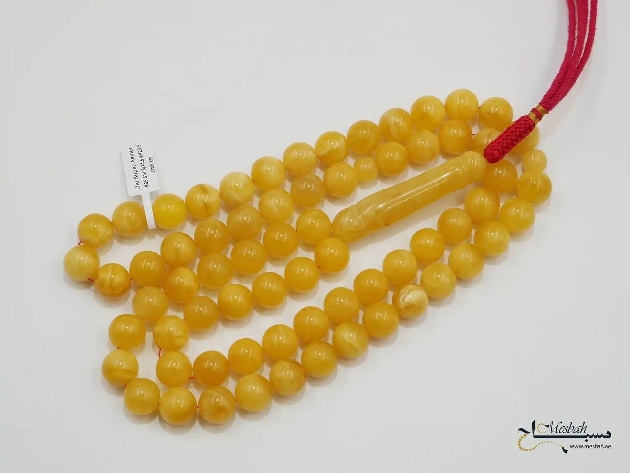 قطعة نادرة تحمل عبق الماضي وروح الأصالة… مسباح مصنوع من مادة الكهرمان ذات القيمة العالية، يتميز بحباته الدائرية المغلفة والمصقولة بعناية لتمنحك ملمسًا ناعمًا ومظهرًا مهيبًا.