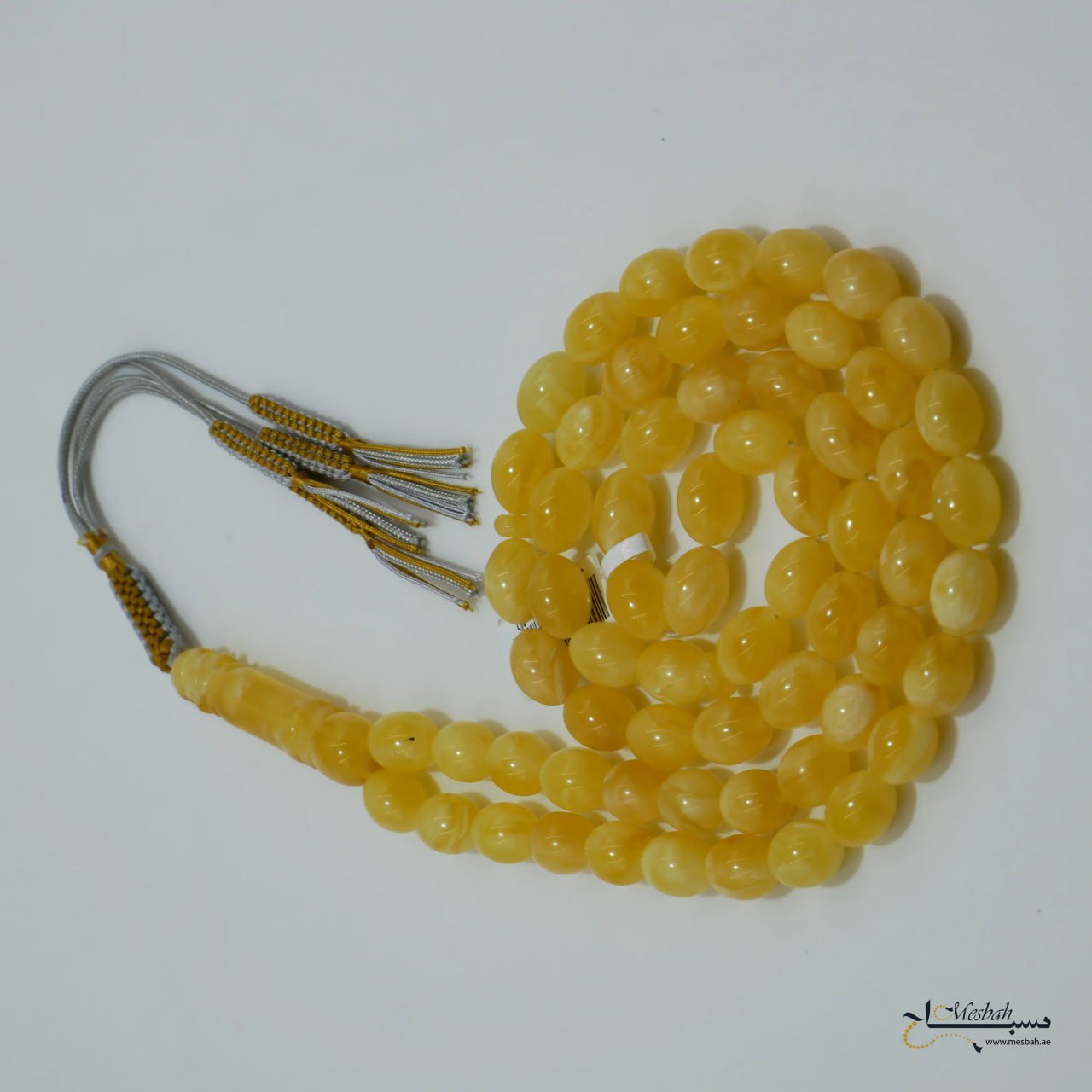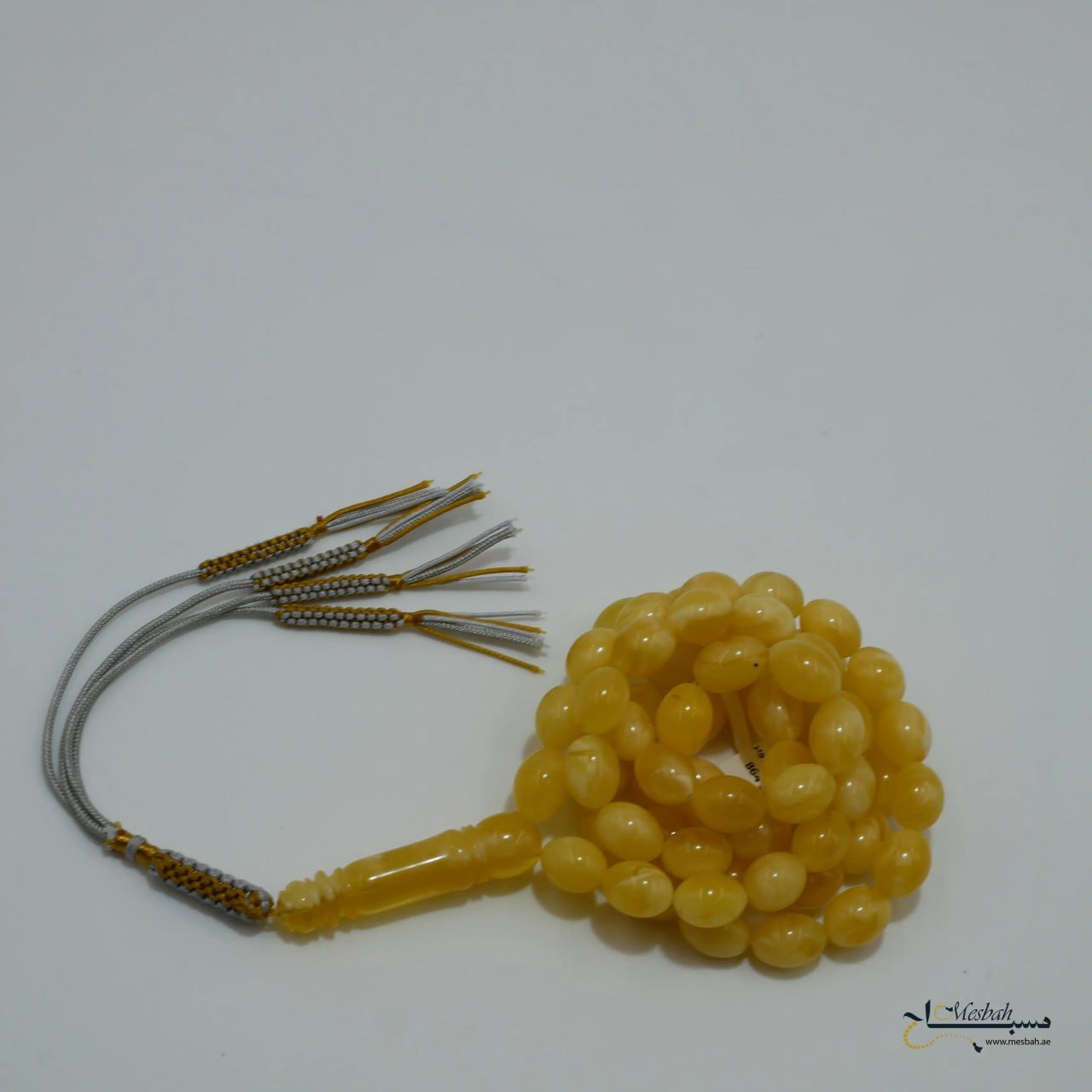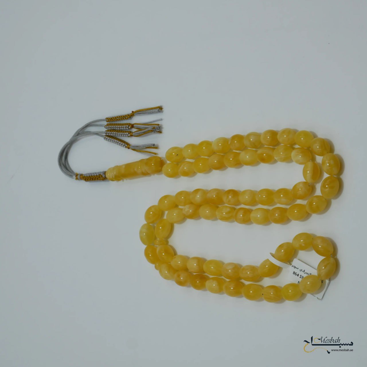 مسباح كهرمان كالينغرادي فاخر بخامة سوبر عالية الجودة، يتميز بلمعانه الطبيعي ولونه الأصفر الدافئ الذي يعكس جمال الكهرمان الأصيل. صُنعت خرزاته المتناسقة على قصة بيض حمام انسيابية أنيقة، تمنحه حضورًا راقيًا ولمسة فاخرة في اليد. تصميمه المتوازن مع رأسه المصقول بدقة وخيطه المتين يجعله خيارًا مثاليًا لهواة اقتناء المسبحة الفاخرة سواء للاستعمال اليومي أو كقطعة مميزة في المجموعات الخاصة.