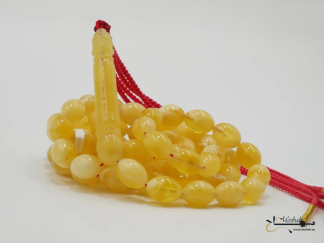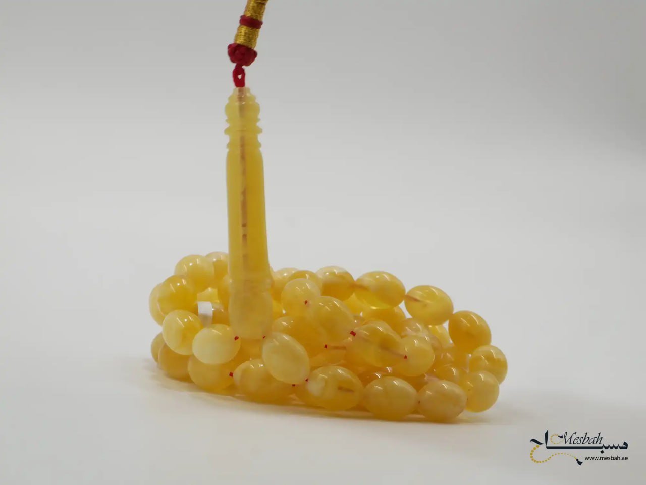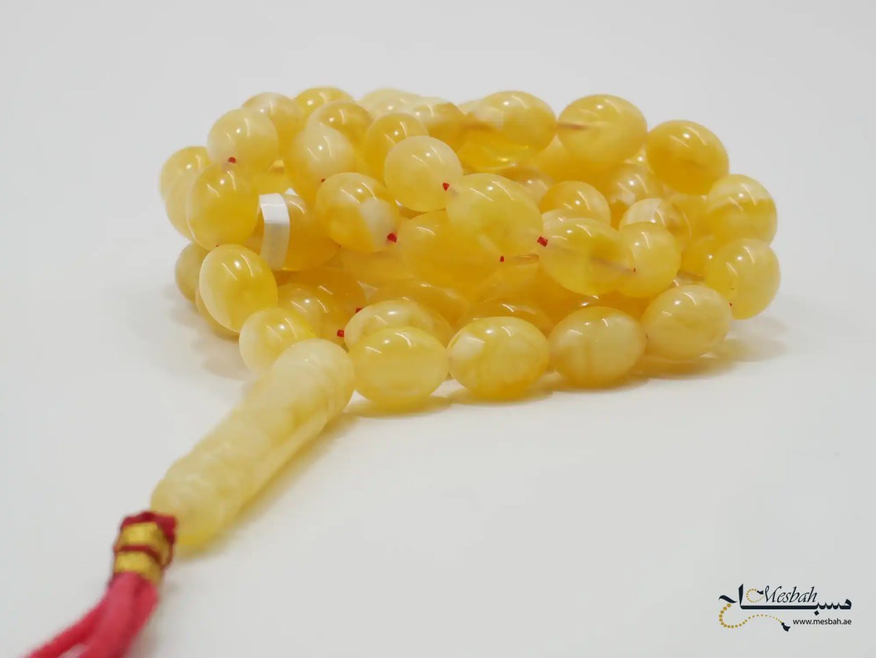 مسباح كهرمان كالينغرادي ملطخ يتميّز بجمال طبيعي وأصالة راقية، ويُعتبر من التحف الفاخرة لمحبي اقتناء المسابيح الفريدة