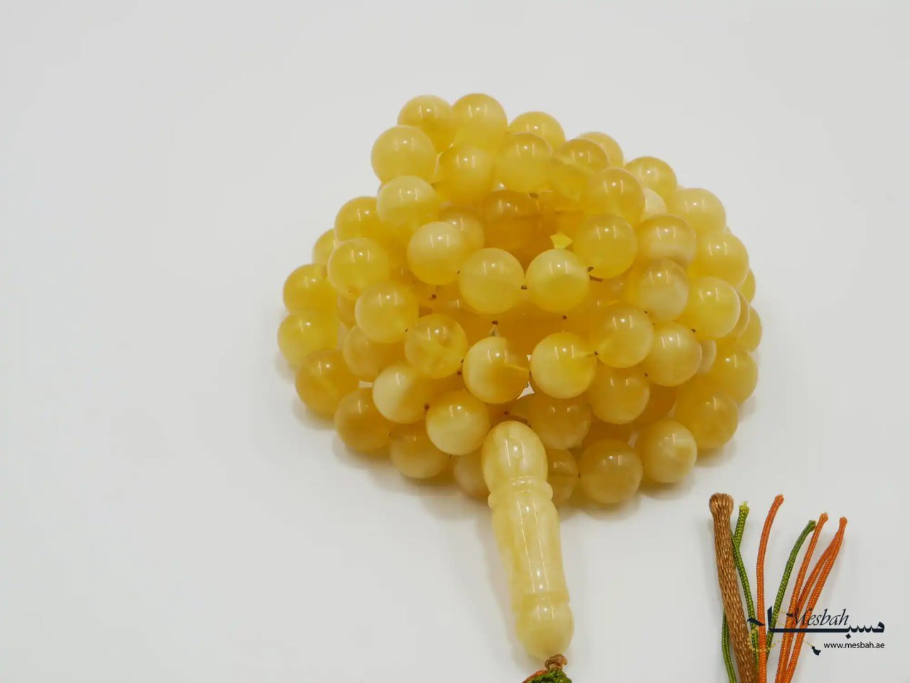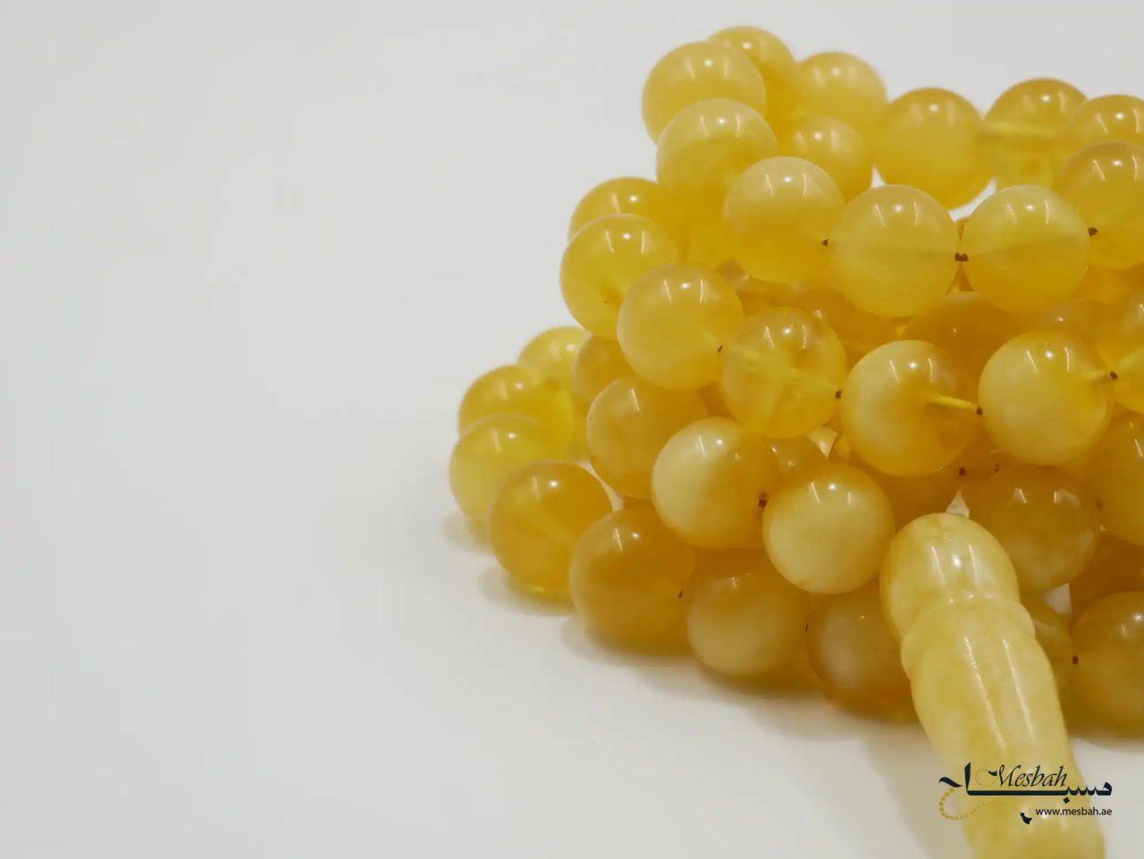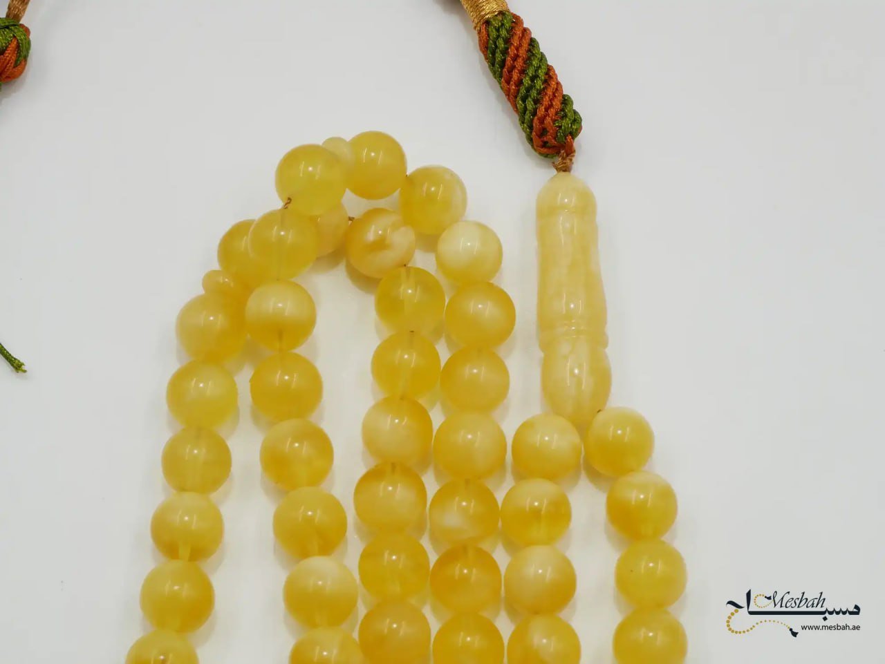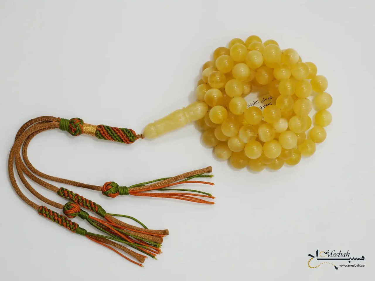 مسباح فاخر من كهرمان كالينغرادي بتصميم دائري متناسق، يتميز بخامة سوبر عالية الجودة تمنحه مظهراً أصيلاً وقيمة استثنائية.