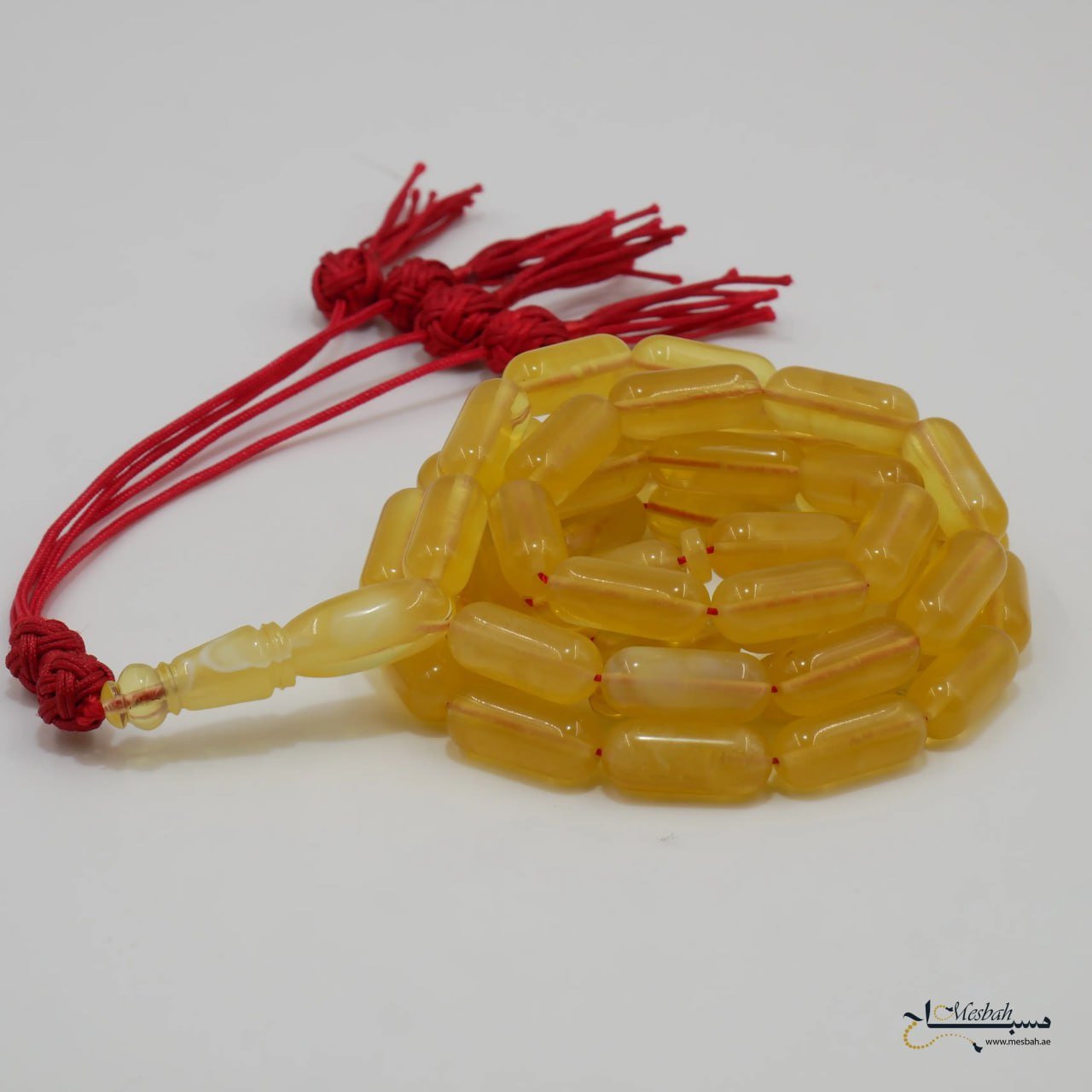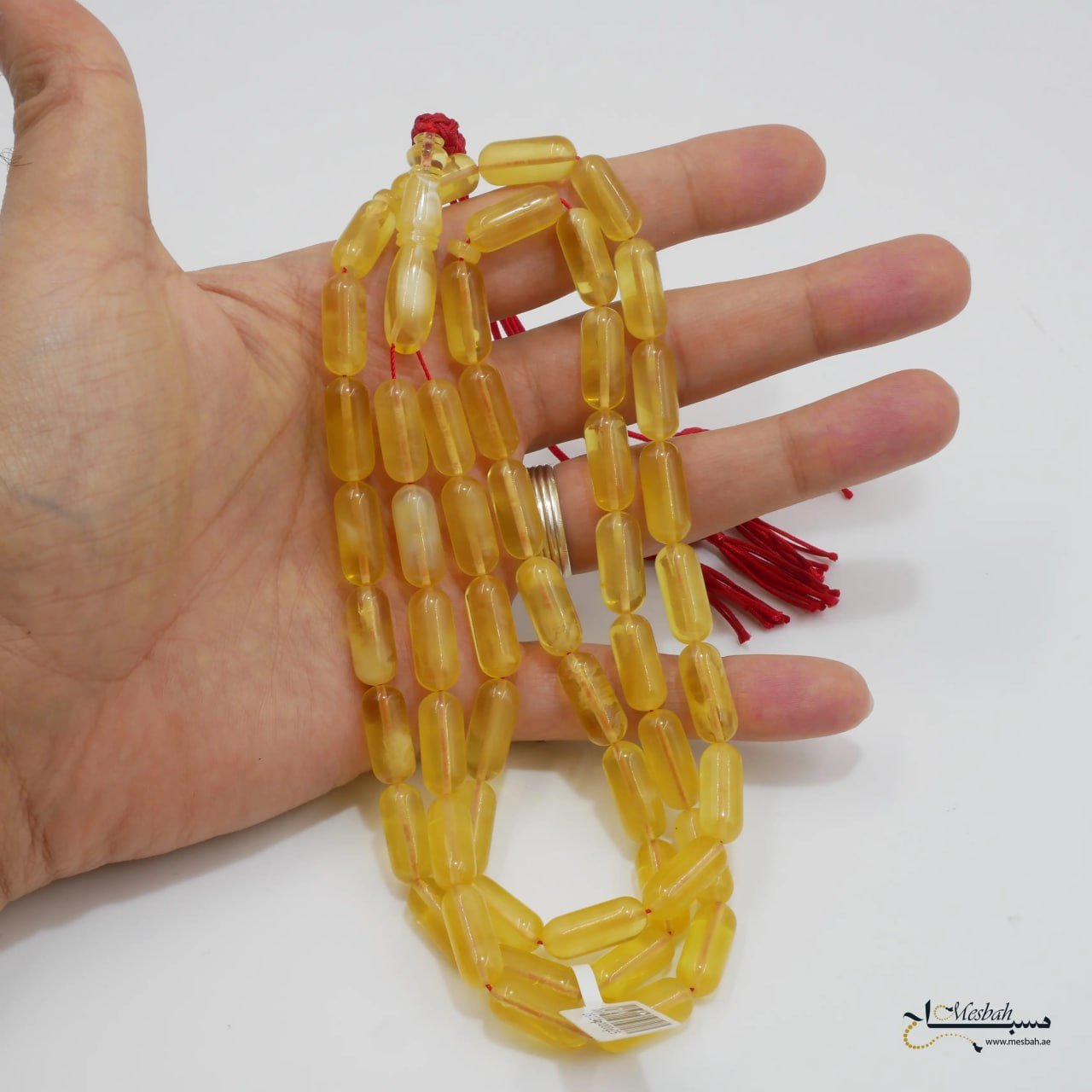 مسباح كهرمان كالينغرادي فاخر بتصميم قصة كبسولية متناسقة تعكس فخامة الكهرمان الطبيعي وأصالته. يتميز بكونه مغيم اللون، حيث تتداخل درجات الكهرمان في طبقات ضبابية ناعمة تمنحه مظهراً فريداً يجمع بين الغموض والجاذبية. هذا التدرج المميز يضيف عمقاً بصرياً للمسباح ويجعله قطعة فنية متكاملة.