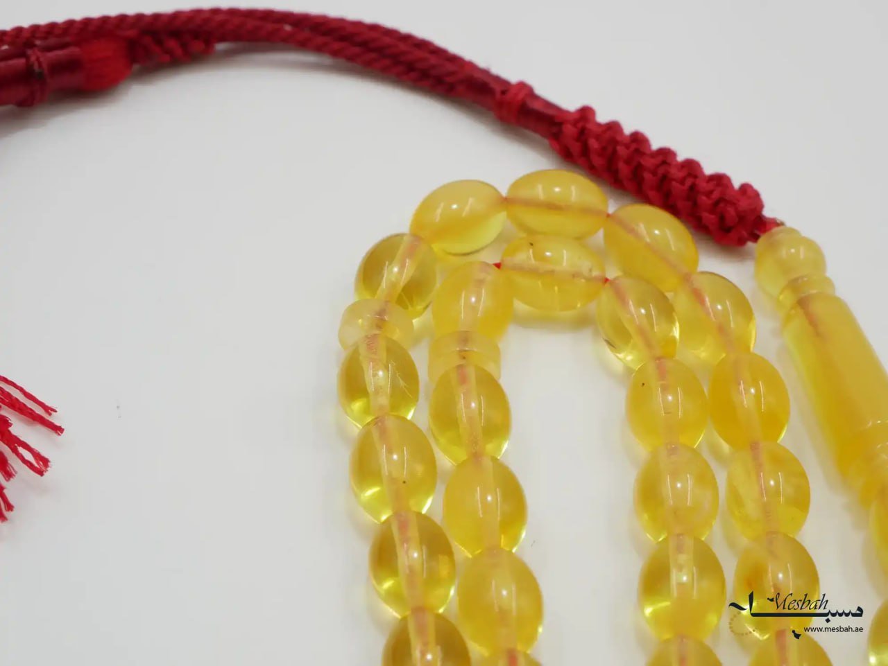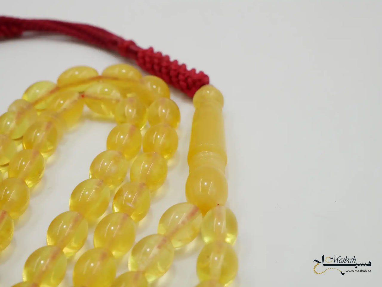 مسباح أنيق يجمع بين الشفافية المميزة والتخريم الفاخر بتصميم متقن. يتميز بلونه العسلي الدافئ الذي يضفي لمسة راقية وجاذبية خاصة.