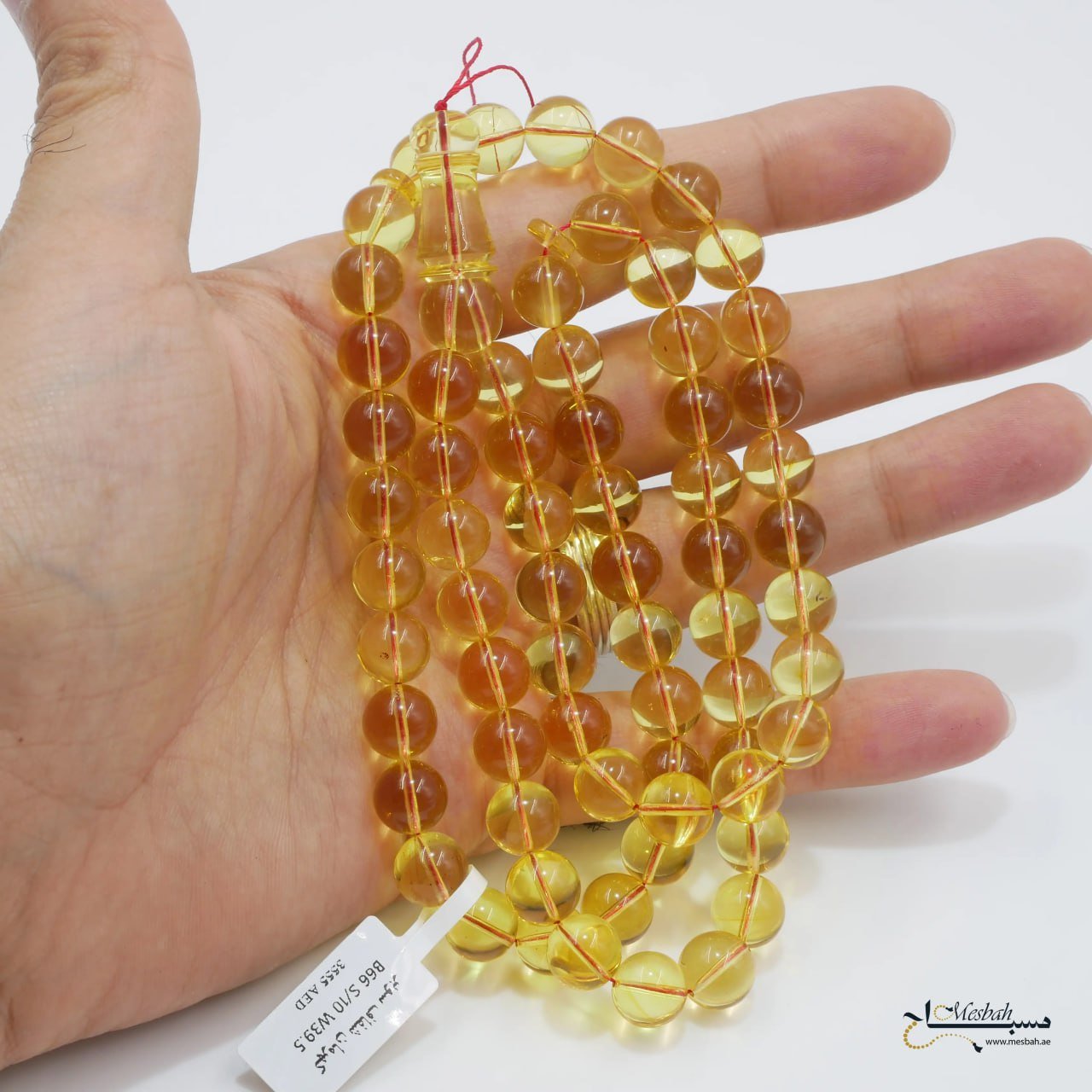 هذا المسباح يتميز بلمعانه الطبيعي وشفافيته الساحرة التي تعكس نقاء الكهرمان البلطيقي النادر. تصميمه المتوازن يجمع بين الراحة في اليد والأناقة في المظهر، ليكون خيارًا مثاليًا للاقتناء الشخصي أو كهدية فاخرة تعبّر عن الذوق الرفيع.