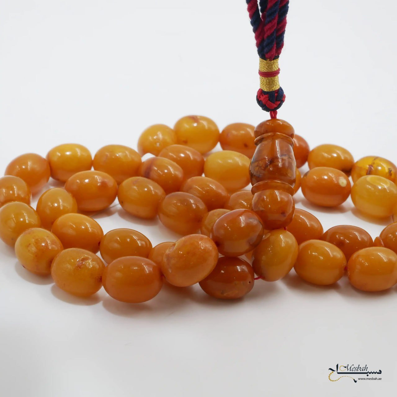 تحفة فاخرة من الكهرمان البلطيقي الحراري المميز، صُمم هذا المسباح بأسلوب راقٍ يجمع بين الأصالة واللمسة العصرية. يتميز بقصته على شكل بيض الحمام التي تمنح الخرزات حضورًا أنيقًا وانسيابية مثالية بين اليدين أثناء التسبيح أو الاستخدام اليومي.