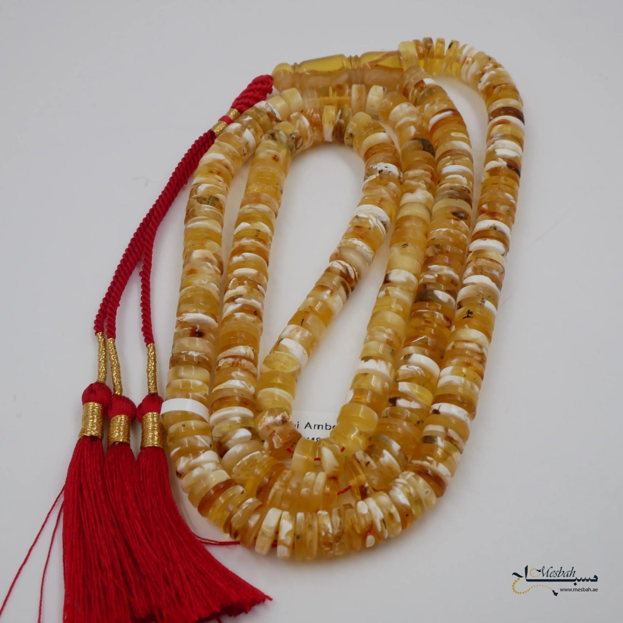 Shine with an exceptional piece of nature with this rosary crafted from impurity amber. It features a unique beauty that combines a translucent golden hue with white and creamy touches.