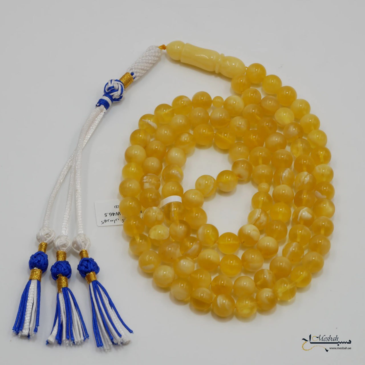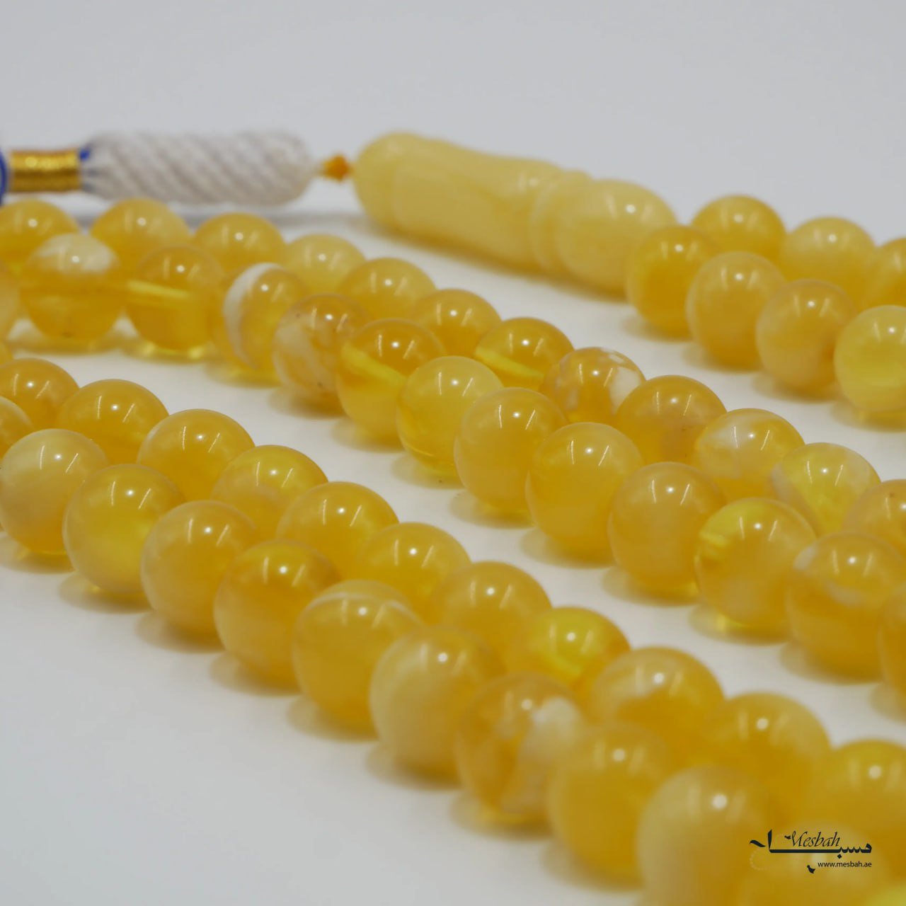 يُعرف كهرمان كالينينغراد بجودته العالية وندرة ألوانه، مما يمنح المسبحة قيمة جمالية وروحانية خاصة.