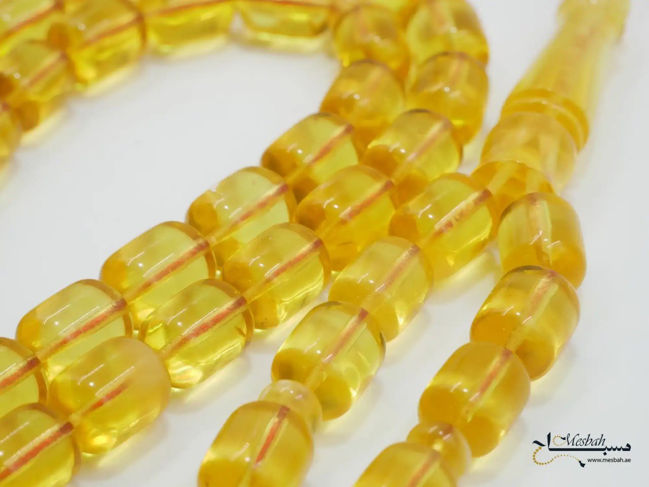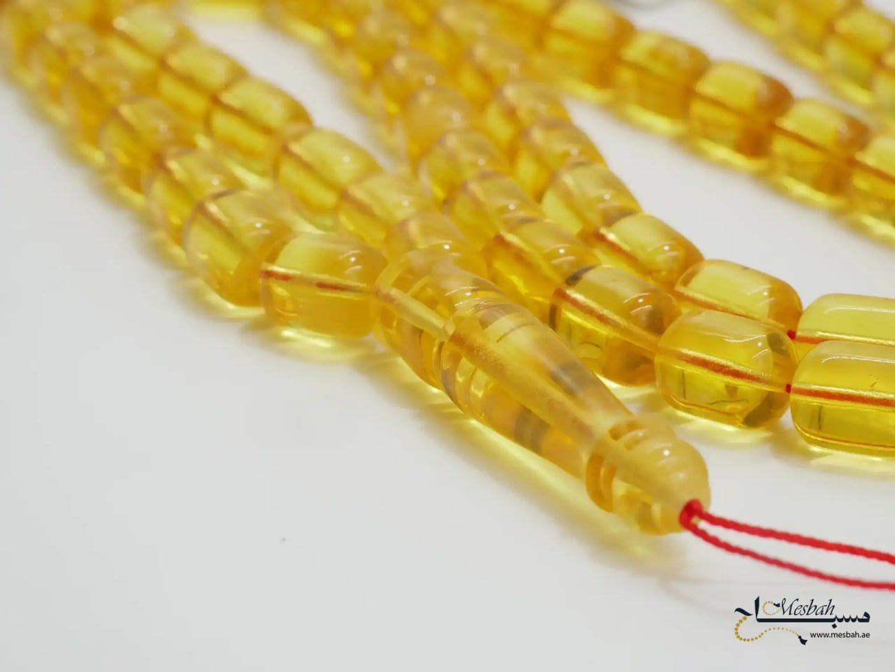 مسباح أنيق يجمع بين الشفافية المميزة والتخريم الفاخر بتصميم متقن. يتميز بلونه العسلي الدافئ الذي يضفي لمسة راقية وجاذبية خاصة.