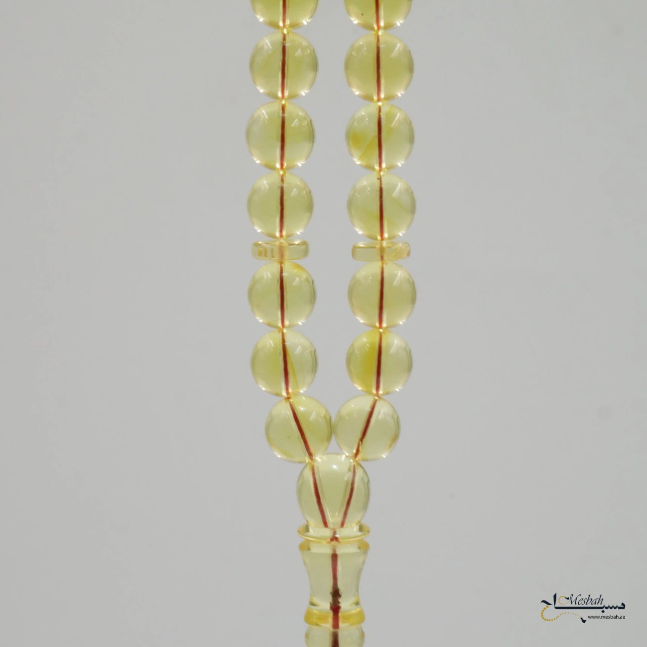 فواصل أو رأس مسباح (الخرزة الكبيرة) من نفس مادة الكهرمان أو مزخرفة يدويًا.